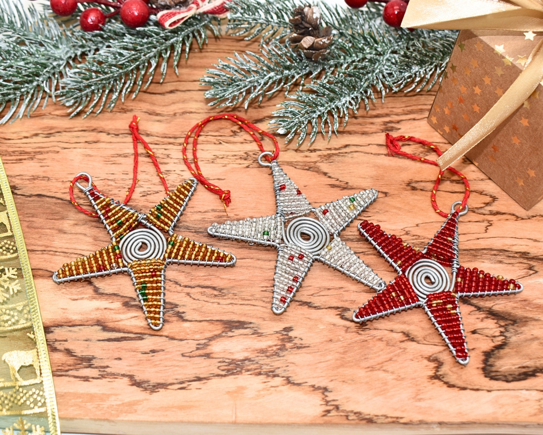Beaded Christmas Decor Hearts | Set of 3 | Maasai Beadwork | Festive Ornaments