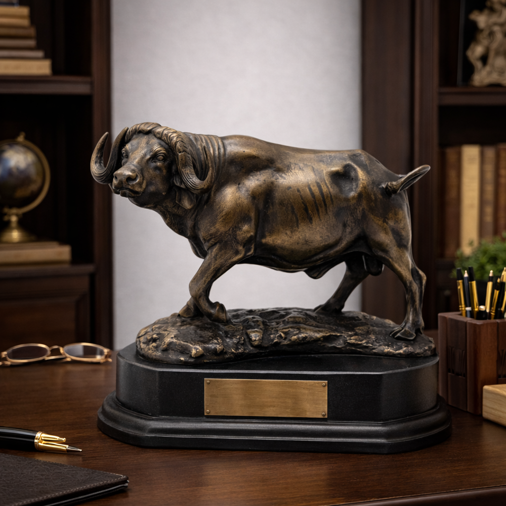 This handcrafted Buffalo Bronze Sculpture is the perfect choice for a unique and distinguished corporate...