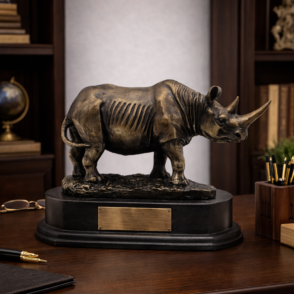 This handcrafted Rhino Bronze Sculpture is the perfect choice for a unique and distinguished corporate...