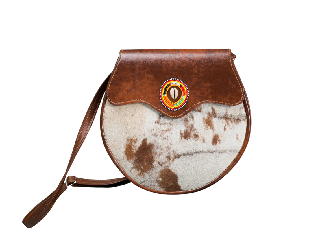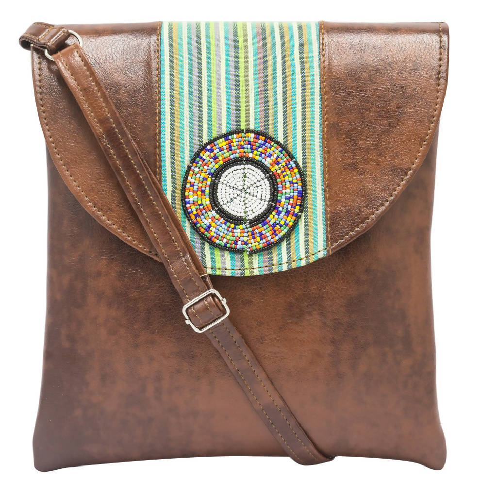 Introducing our beautiful leather and beaded sling bag, handmade by skilled African artisans with a...