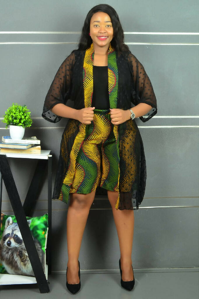 Our Maua lace kimono with Ankara shorts is a stylish and trendy outfit that combines...