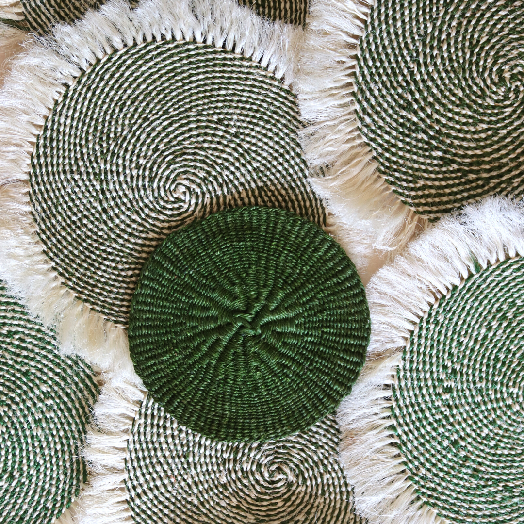Green Pattern Boho Placemats | Sisal mats with fringe