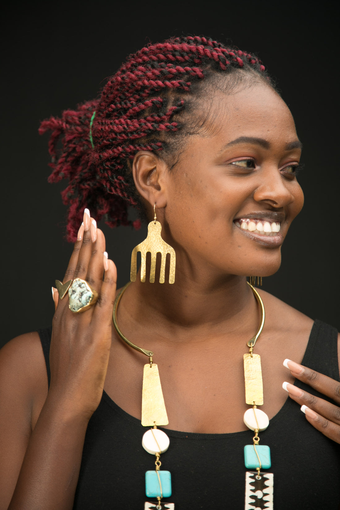 These African Comb Brass Earrings are a stunning example of the artistry and craftsmanship of...