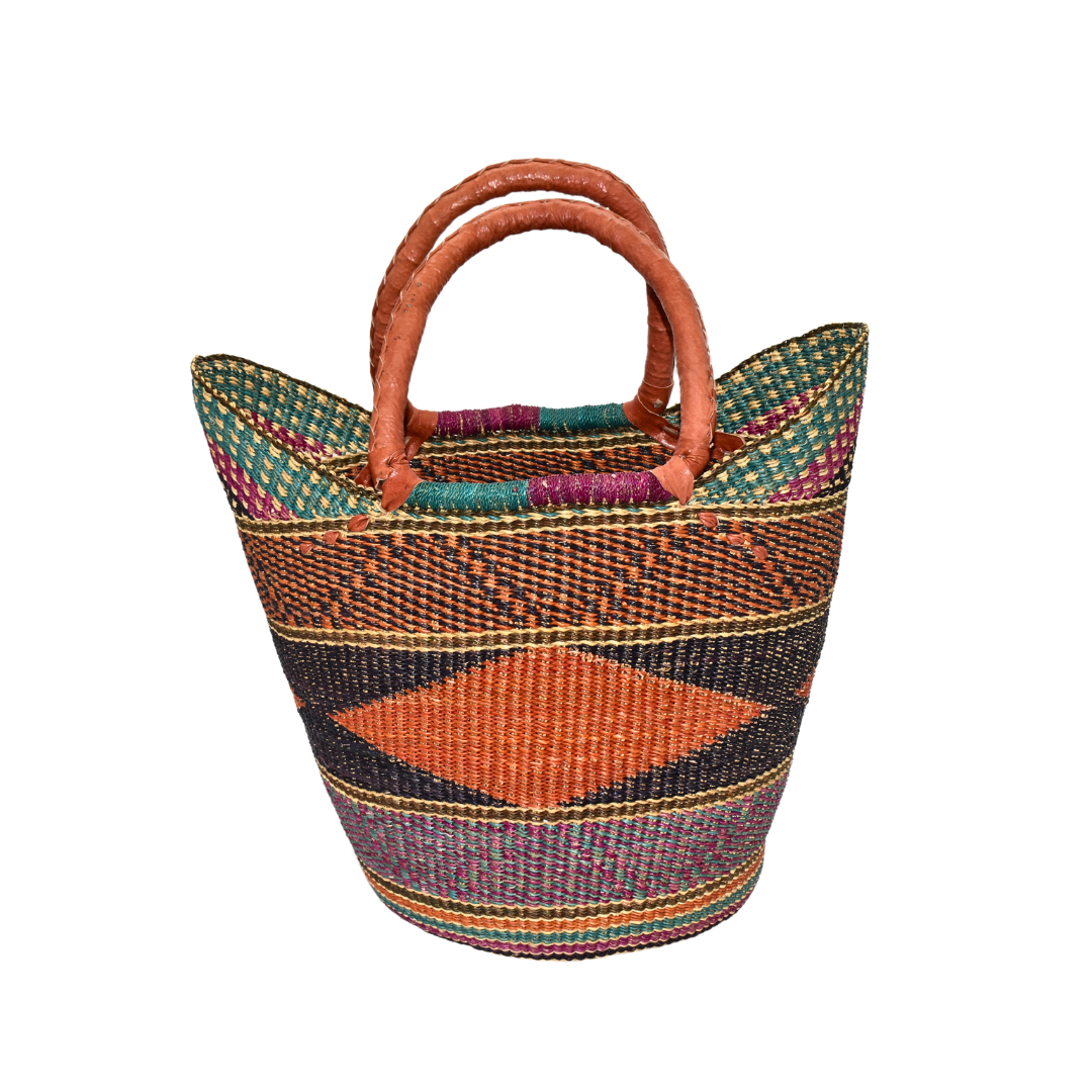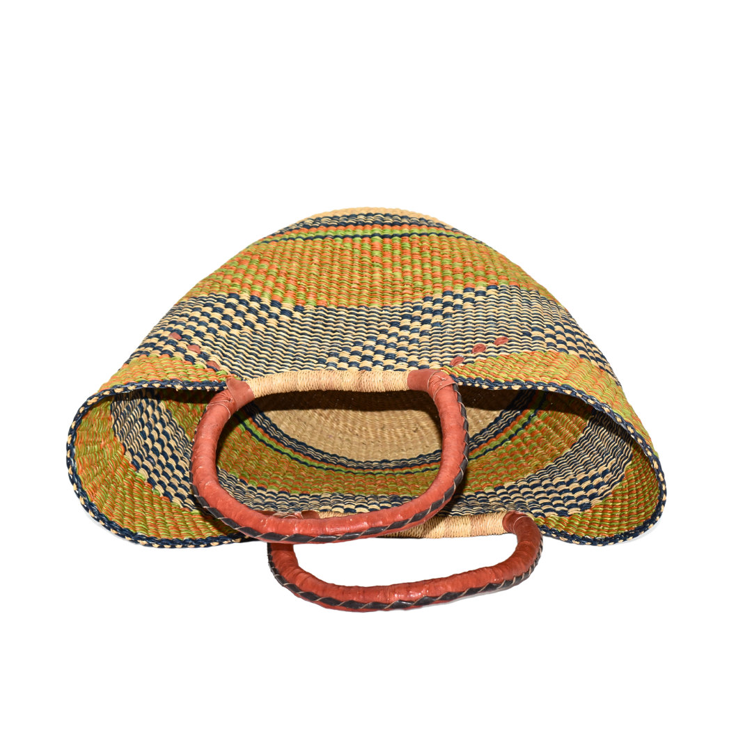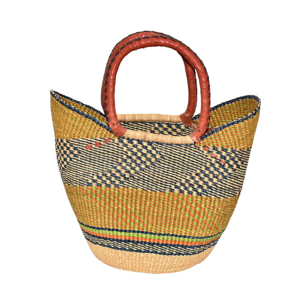 Bolga U-Shopper Basket is a stunning blend of tradition, sustainability, and practicality. Handwoven by skilled artisans in Ghana using eco-friendly elephant grass, this basket is both durable and lightweight, making it perfect for shopping, beach days, or stylish storage.