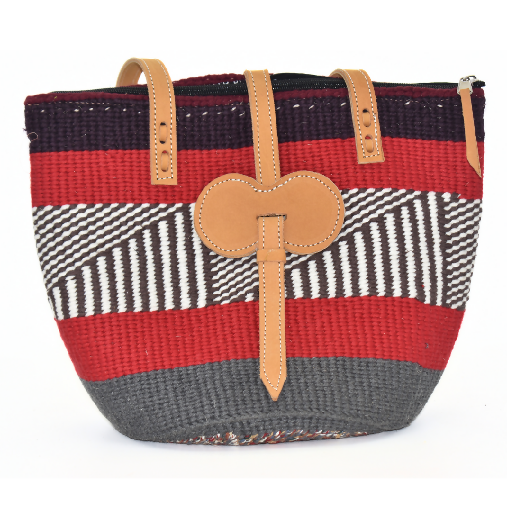 This Woolen Kiondo Handbag is a modern spin on the classic sisal kiondo. Skillfully woven with...