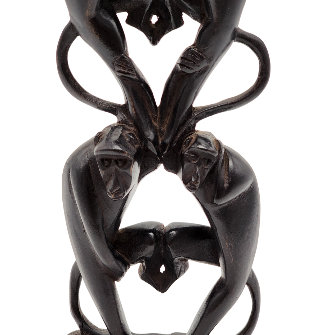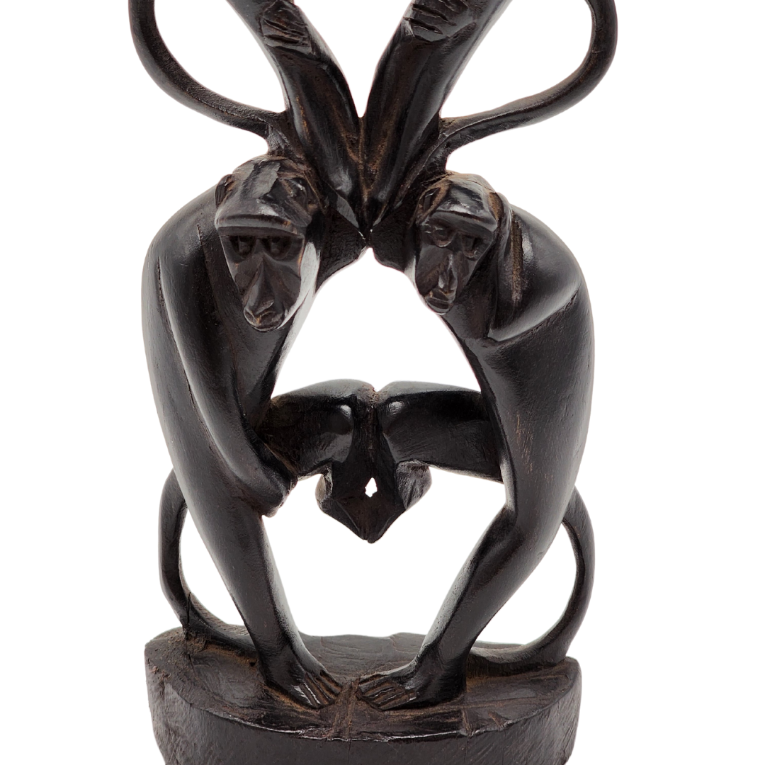 This exquisite wood carving is handcrafted from soft wood. The carving displays wise monkeys each representing proverbial principles of;