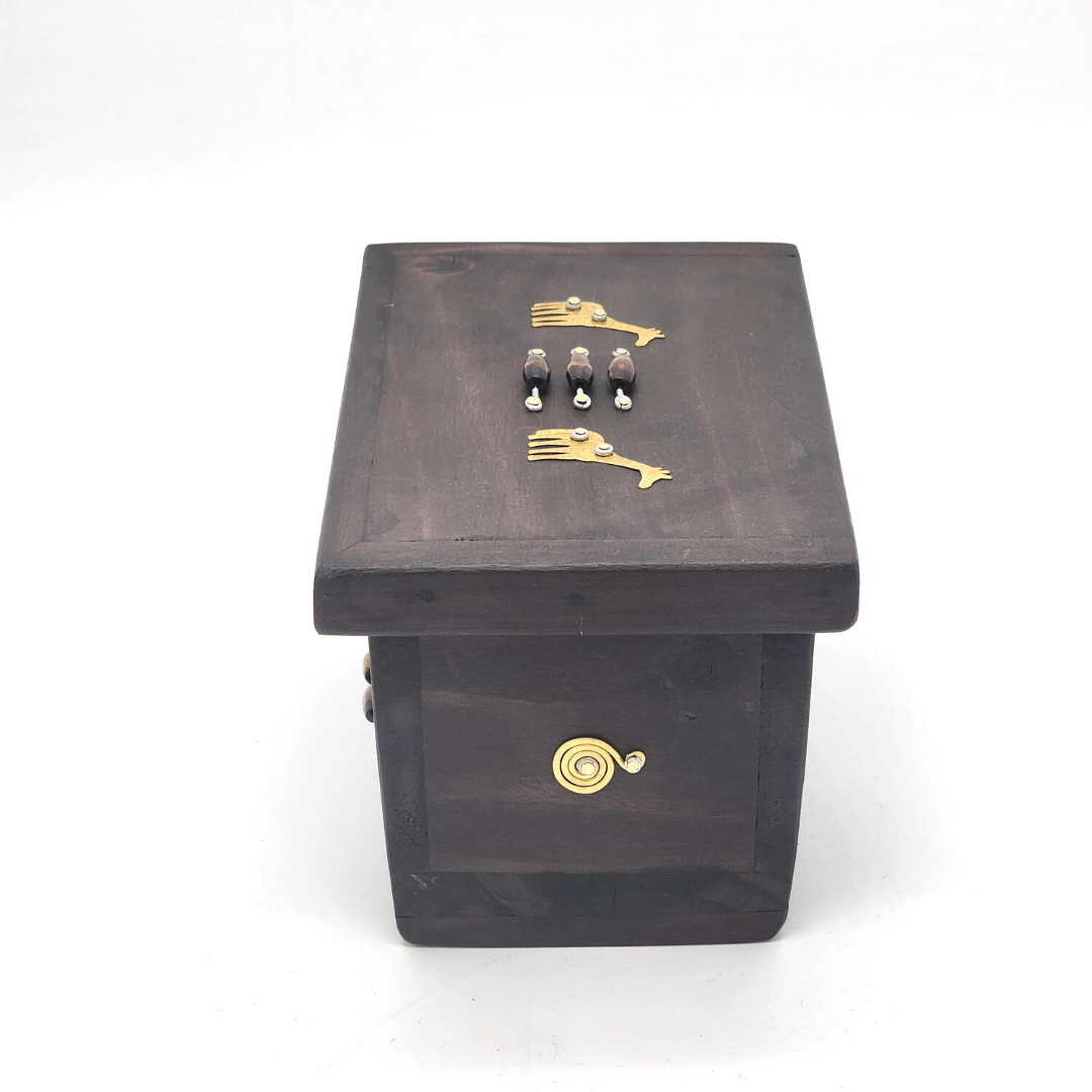One of kind handmade decorative chest box that will make a lasting impression. This piece is just so beautiful and will standout in a room.