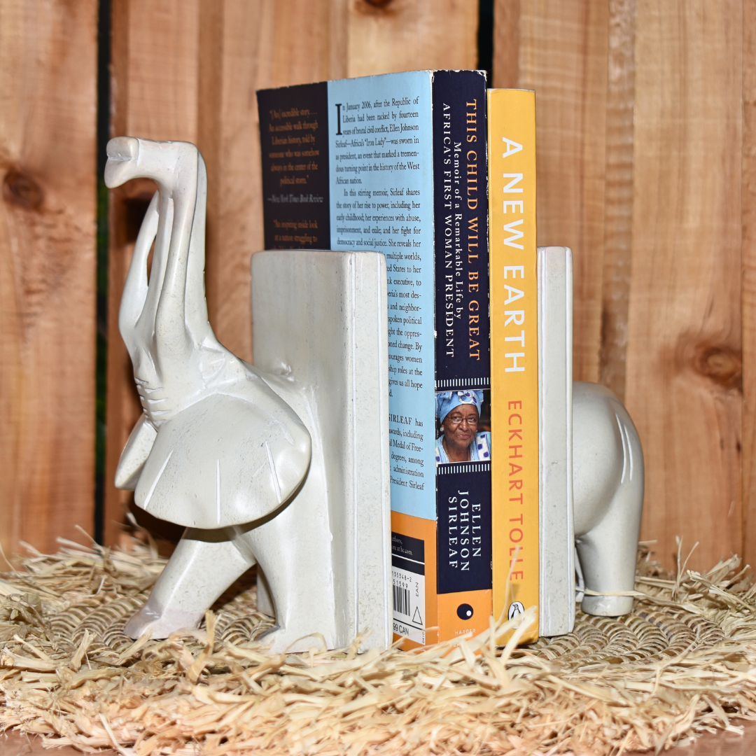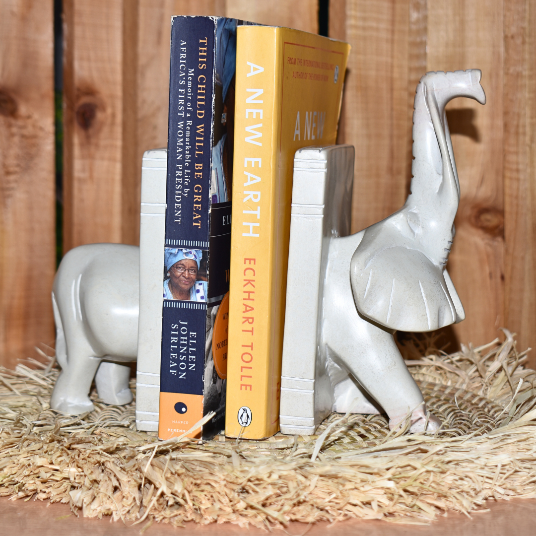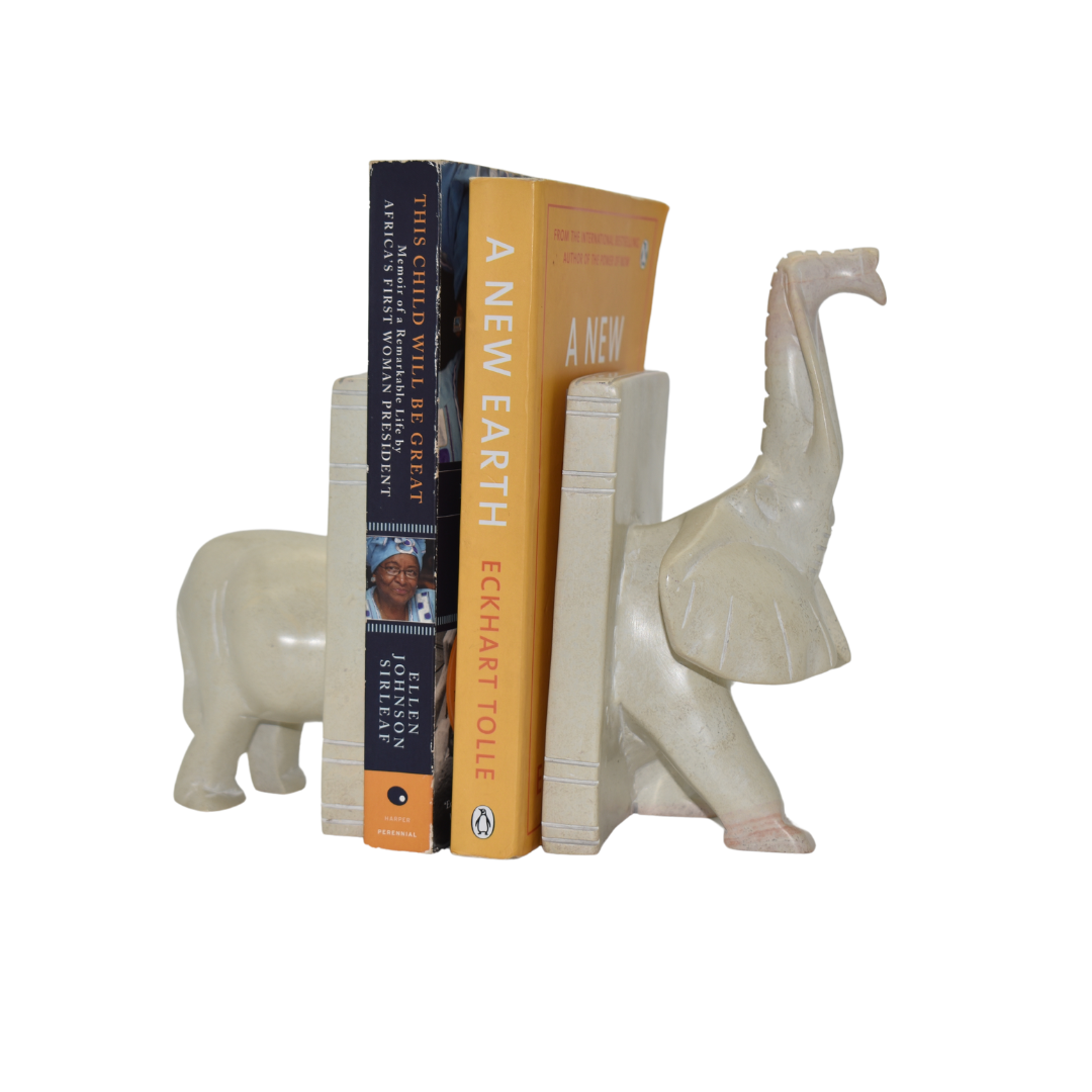 Sculpted with precision by skilled artisans in the Kisii region of Kenya, each piece embodies the rich cultural heritage and craftsmanship that Africa is celebrated for. The beautifully carved African elephant serves not just as a symbol of strength and wisdom but also as an artful support for your favorite books.