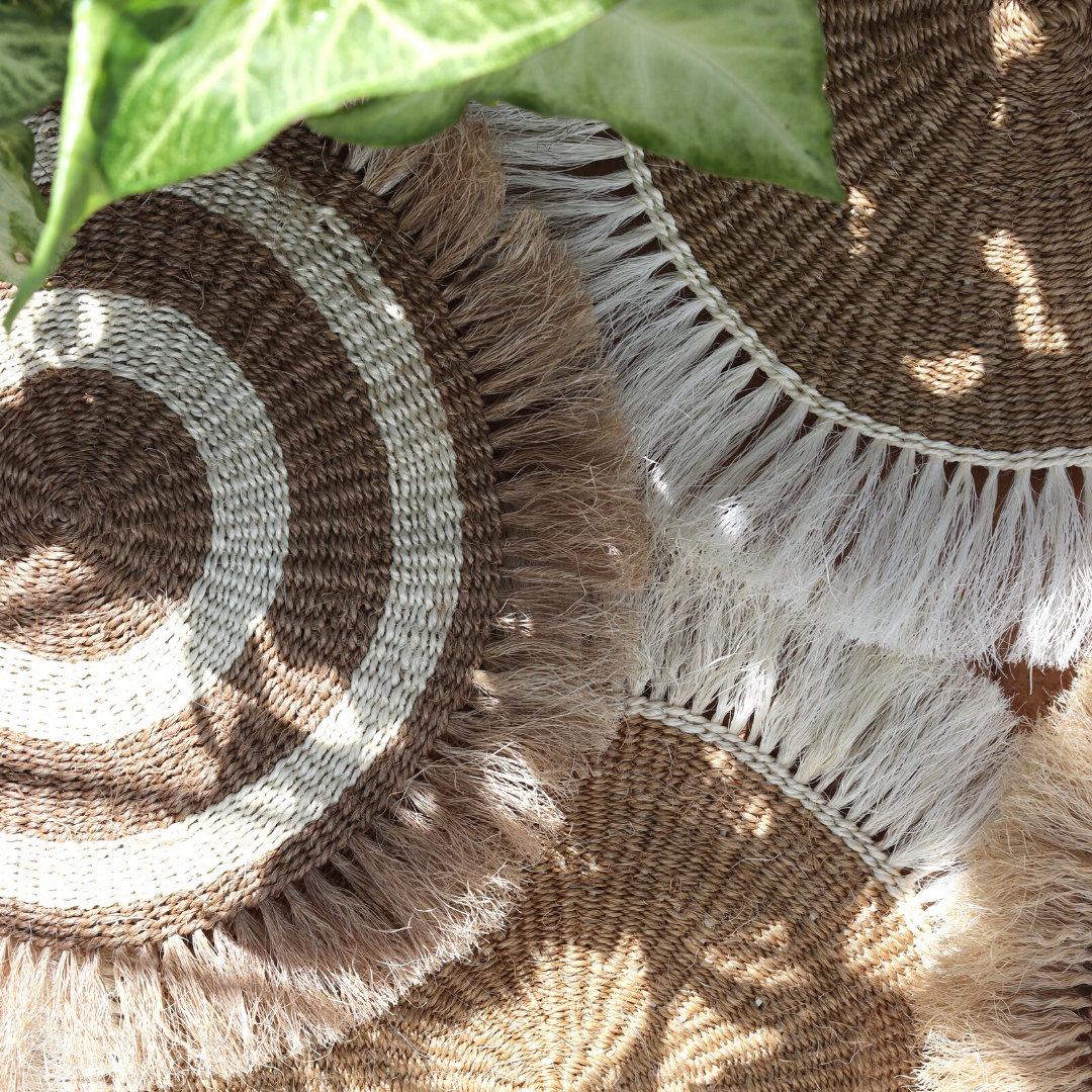 Boho Placemats | Natural with white circle set | Sisal mats with fringe