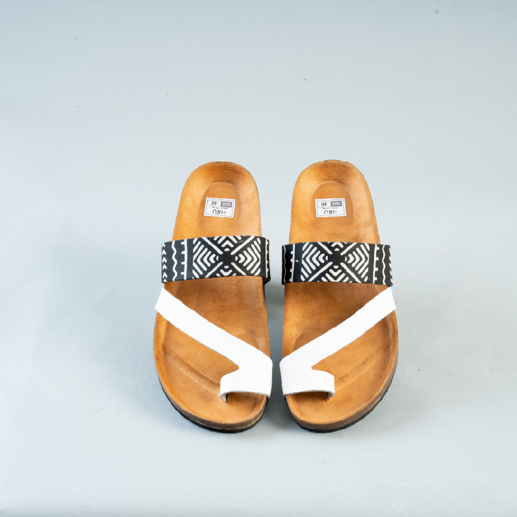 Cork Sandals | African Print Sandals | White