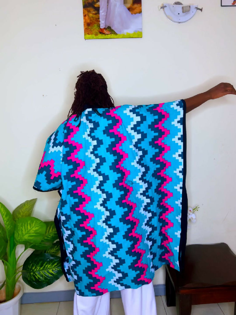 Step out in effortless style with our Ankara Mid-Length Kimono, a perfect blend of comfort, culture, and class. Designed using high-quality African Ankara fabric, this kimono adds a vibrant touch to any outfit. Its flowy mid-length cut gives a flattering silhouette, while the wide sleeves and open-front design make it versatile for layering over dresses, jeans, or shorts.