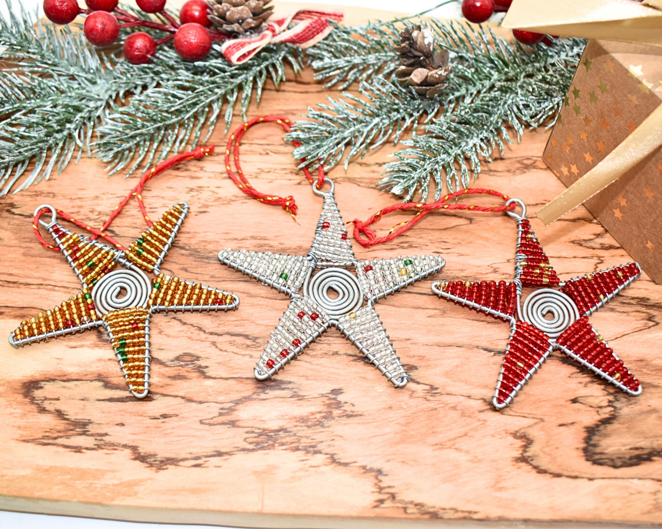 Make your holiday season truly special with these Beaded Christmas Decor Stars — a fusion of festive joy, cultural richness, and ethical craftsmanship.