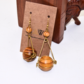 These Dangling Brown Wooden Earrings are a captivating blend of natural beauty and understated elegance. Crafted from lightweight wood and brass wire, these earrings offer a perfect balance of style and comfort. The rich brown hue of the wood adds warmth to any ensemble, while the brass wire detailing adds a touch of sophistication. With their versatile design, these earrings are perfect for both casual and formal occasions.