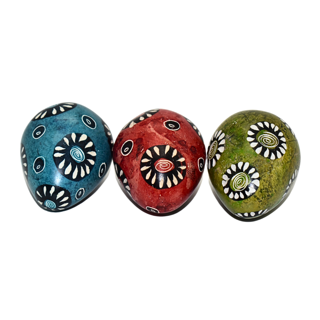 Celebrate the season with this charming set of 3 soapstone eggs, handcrafted in Kenya by skilled artisans. Each egg is carefully carved from natural soapstone and hand-painted with vibrant patterns, making every piece truly one-of-a-kind.