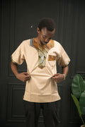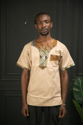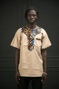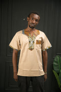 Make a bold statement with our Men's African Ankara Accent Shirt – a sophisticated blend of classic tailoring and vibrant African style. This tailored cotton shirt features stunning Ankara fabric accents at the front, pocket square, and sleeves, creating a unique look that's both refined and culturally rich.