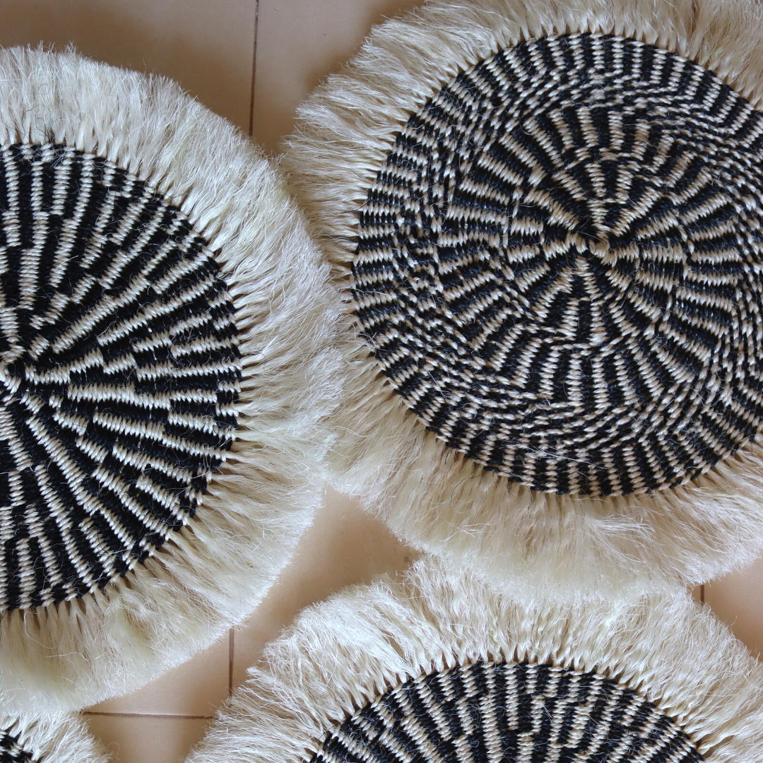 Our sisal placement mats comes in sets of 3 12-inch diameter mats. They can be used as wall décor as well as protective table mats. They are very versatile, you could use them for events like thanksgiving, christmas, bridal shower and baby shower. All our sisal mats are handmade by women from the rural villages in Kitui, Kenya.