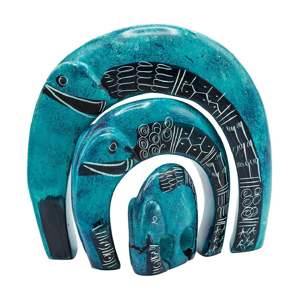 This Soapstone Elephant Family, a beautiful piece of art handcrafted from soapstone sourced from Kisii, Kenya. This unique masterpiece is perfect for adding an exotic touch to your home decor. Each piece is carefully carved and polished by skilled artisans to create a stunning elephant family that will make a statement in any room.