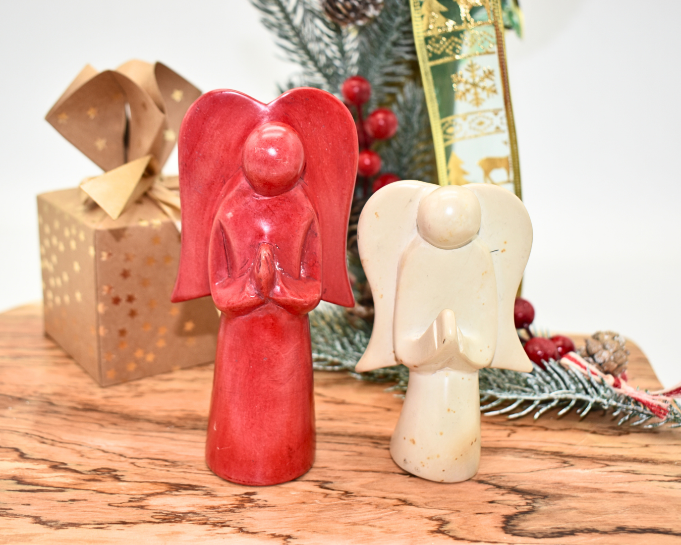 Soapstone Angel Figurine Christmas Décor | Kenyan Hand-Carved | Festive Holiday Figurine