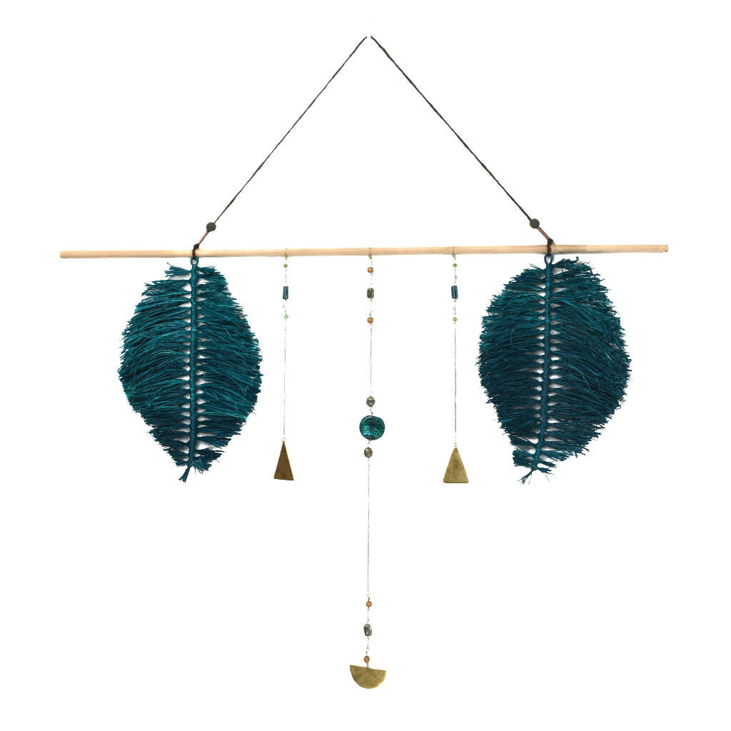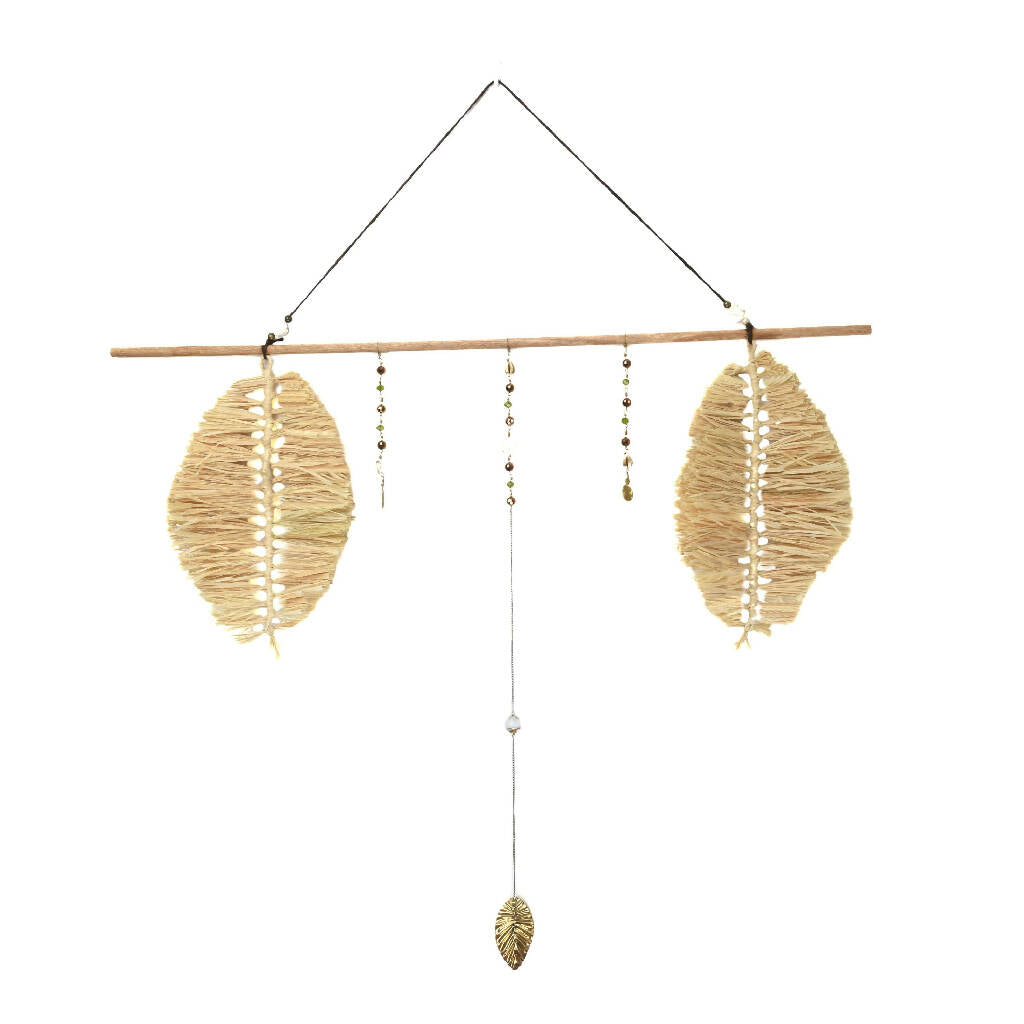 This stylish yet ethnic wall art decoration is perfect for those looking to add a touch of elegance to their living spaces. Made from high-quality beads, brass ornaments and raffia boho leafs arranged together to create this stunning wall decor piece.
