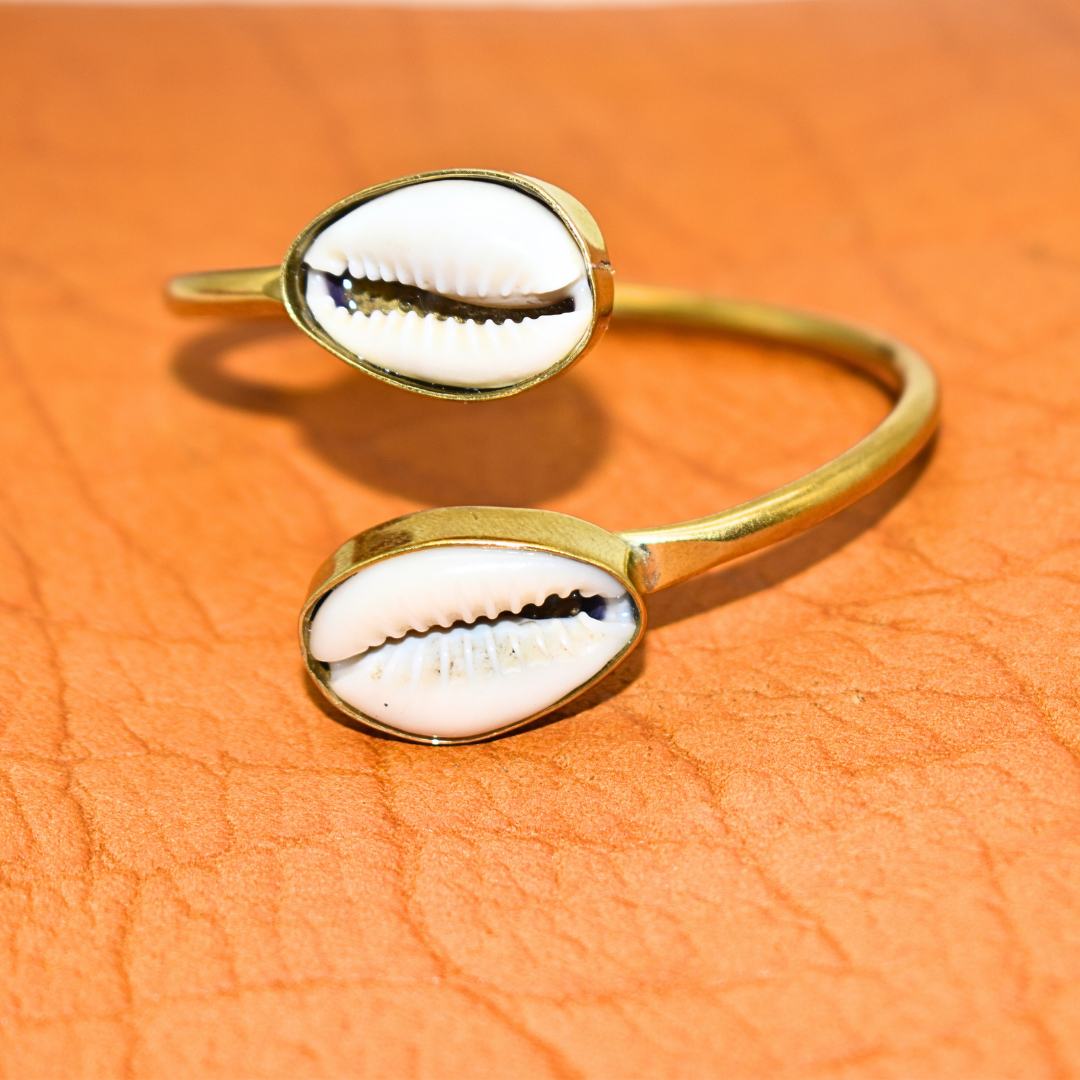 This Brass Bangle with Shells is a stunning fusion of coastal elegance and timeless sophistication....