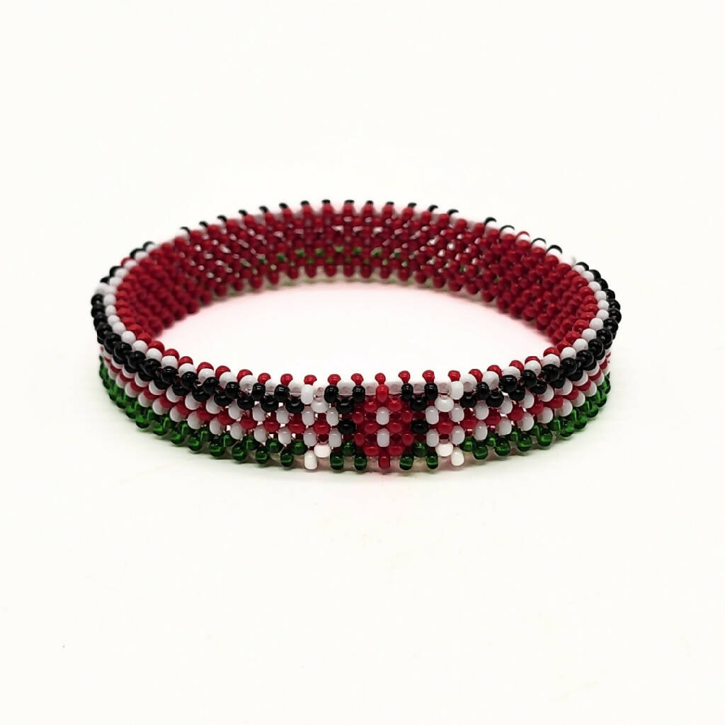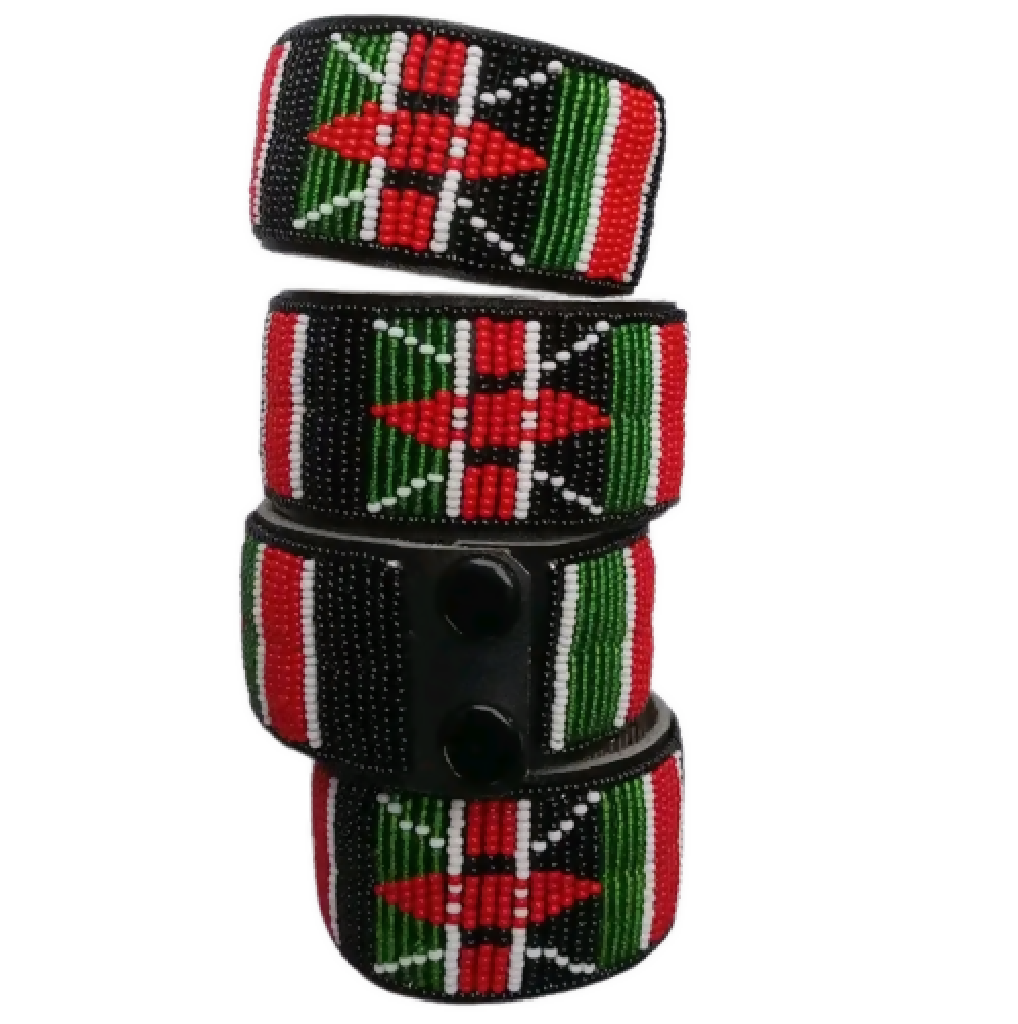 Kenya flag leather beaded bracelet are made of fine glass beads Width 1.5 inches circumference approx...