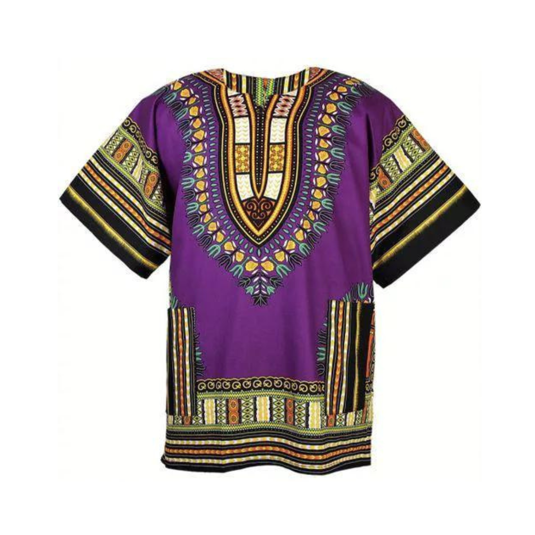 A stylish and comfortable unisex shirt. Crafted from traditional African dashiki printed material, this shirt embodies the rich history and vibrant heritage of African textiles. Dashiki fabric holds deep cultural significance, originating from West Africa and often associated with pride, identity, and celebration within African communities.