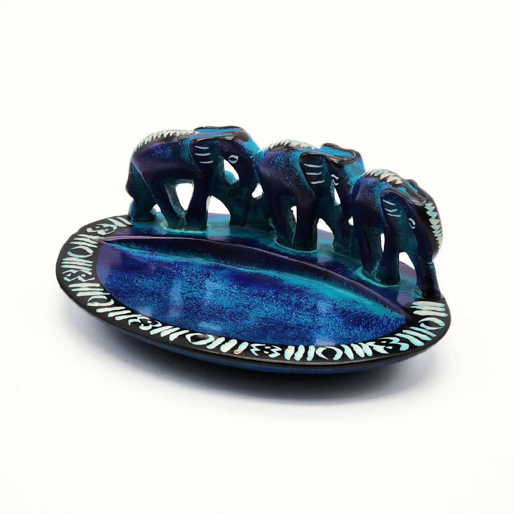 The Tri Blue  Elephant Soapstone Bowl is a beautiful and functional piece of art that...