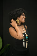 The design of these earrings is both elegant and bold, making them a perfect statement piece for any outfit. The intricate detailing and unique shape of the earrings make them a true work of art, reflecting the rich cultural heritage of African artistry.