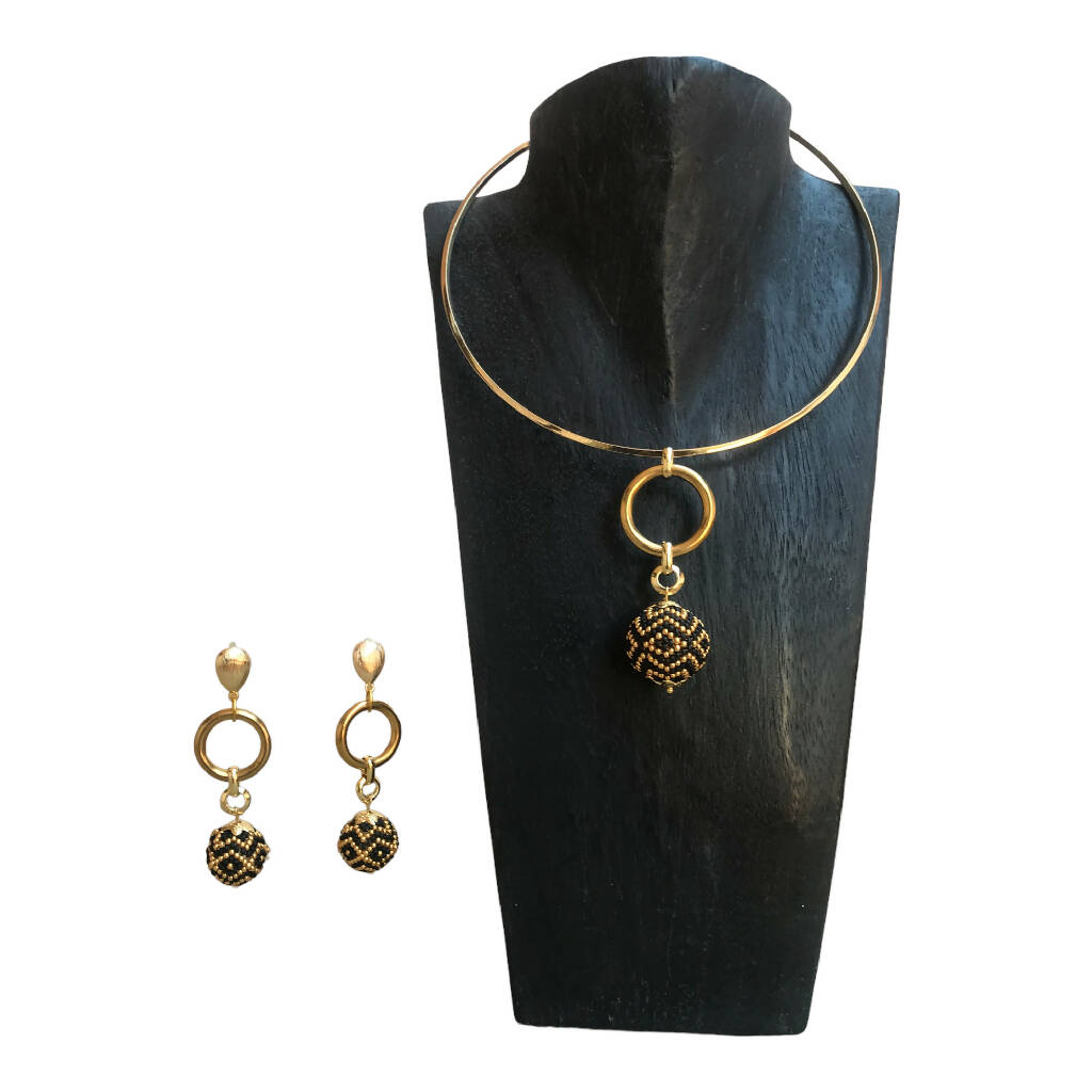 Step out with our Cheetah Choker set — adding an exotic and alluring touch to your ensemble. Black and gold beads are intricately woven into a pattern that mimics a cheetah’s spotted coat, forming a necklace that drapes provocatively over your décolletage for a show-stopping look for special occasions or every day wear. Completely handmade for the perfect one-of-a-kind piece, this luxurious choker set will elevate any style.