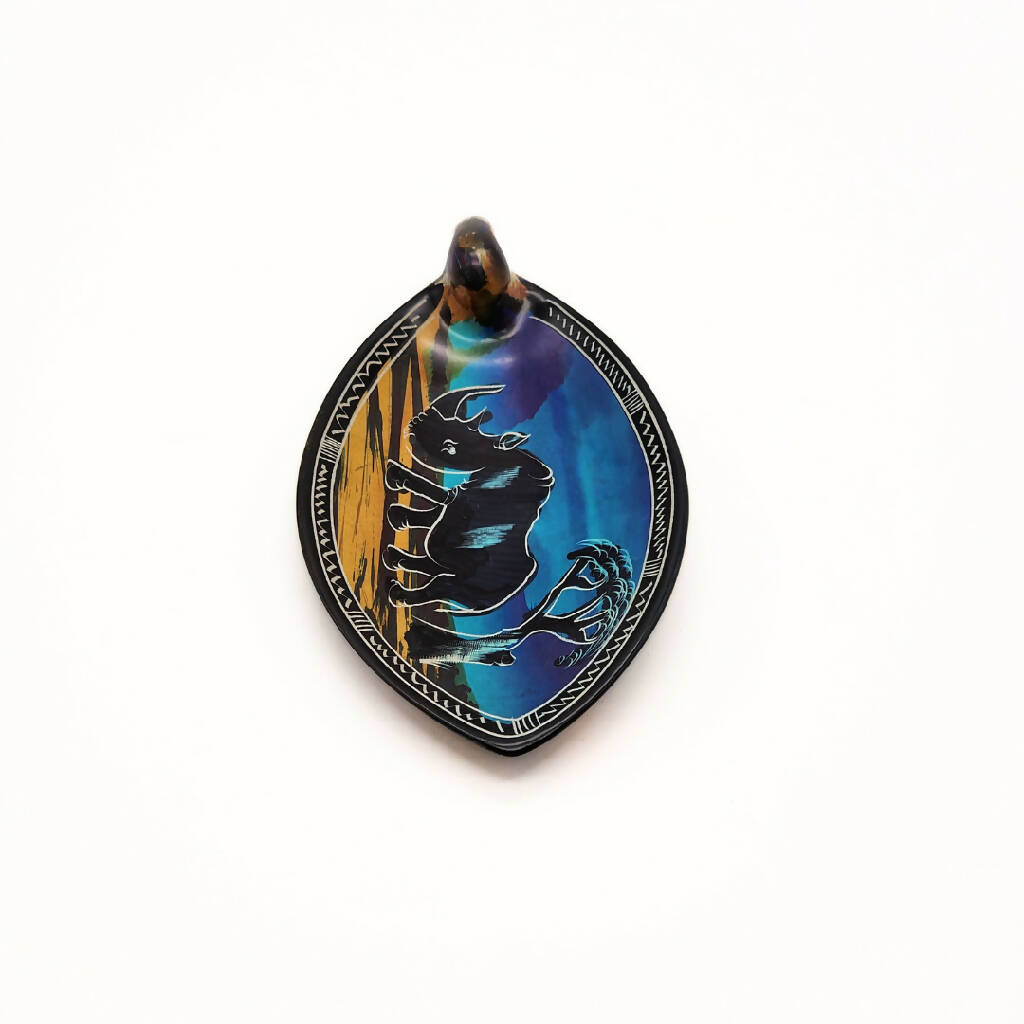 This Rhino Soapstone Bowl in a beautiful blue color is a stunning piece of art that will make a great addition to any home. The intricate design and skillful carving make this bowl a unique and eye-catching piece.