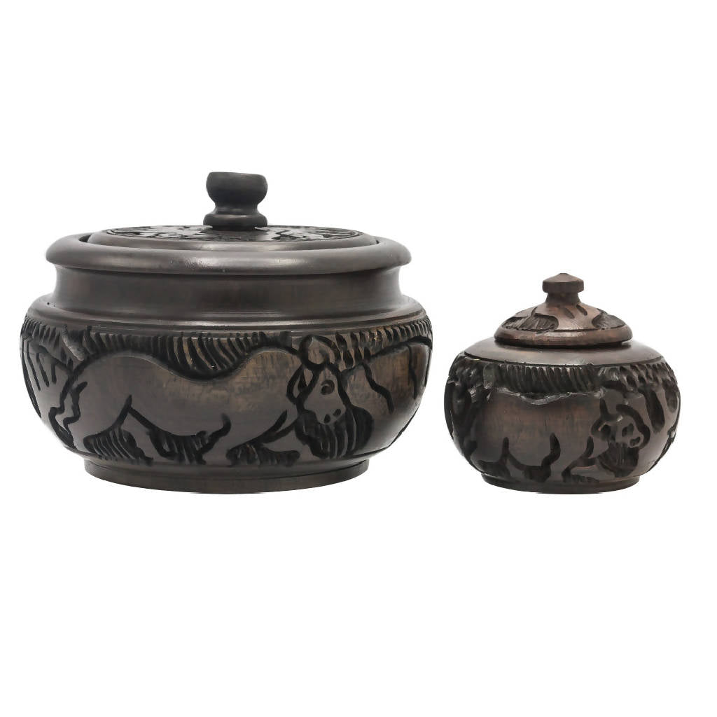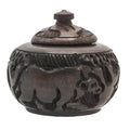 This wooden sugar dish is not just a functional kitchen accessory, it is also a beautiful piece of art that will add a touch of elegance to any home. Handcrafted from high-quality hardwood, it features intricate animal carvings that are sure to impress any guest. The natural grain and warm tones of the wood create a unique and rustic aesthetic that will fit perfectly into any kitchen décor.