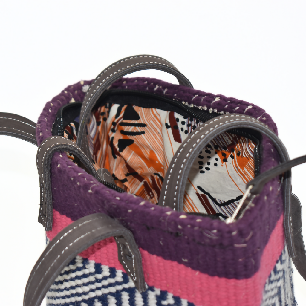 This Woolen Kiondo Handbag is a modern spin on the classic sisal kiondo. Skillfully woven with wool instead of sisal, it offers a distinctively soft texture. Handcrafted by talented women artisans in Kitui, Kenya, this bag seamlessly blends heritage with contemporary design.