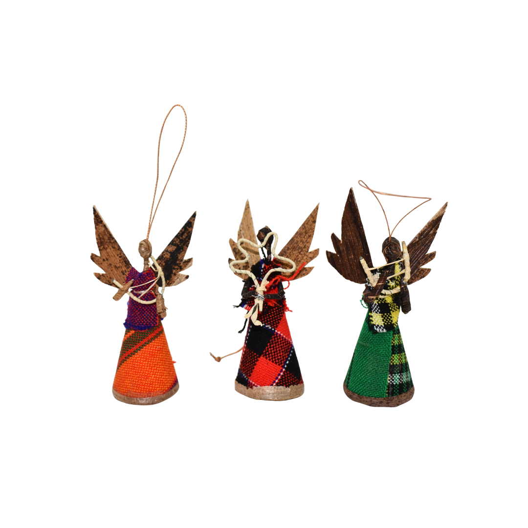 African Angel Christmas Tree Ornaments | Maasai Shuka & Kikoi | Set of 3 | Handmade Banana Leaves Trinkets