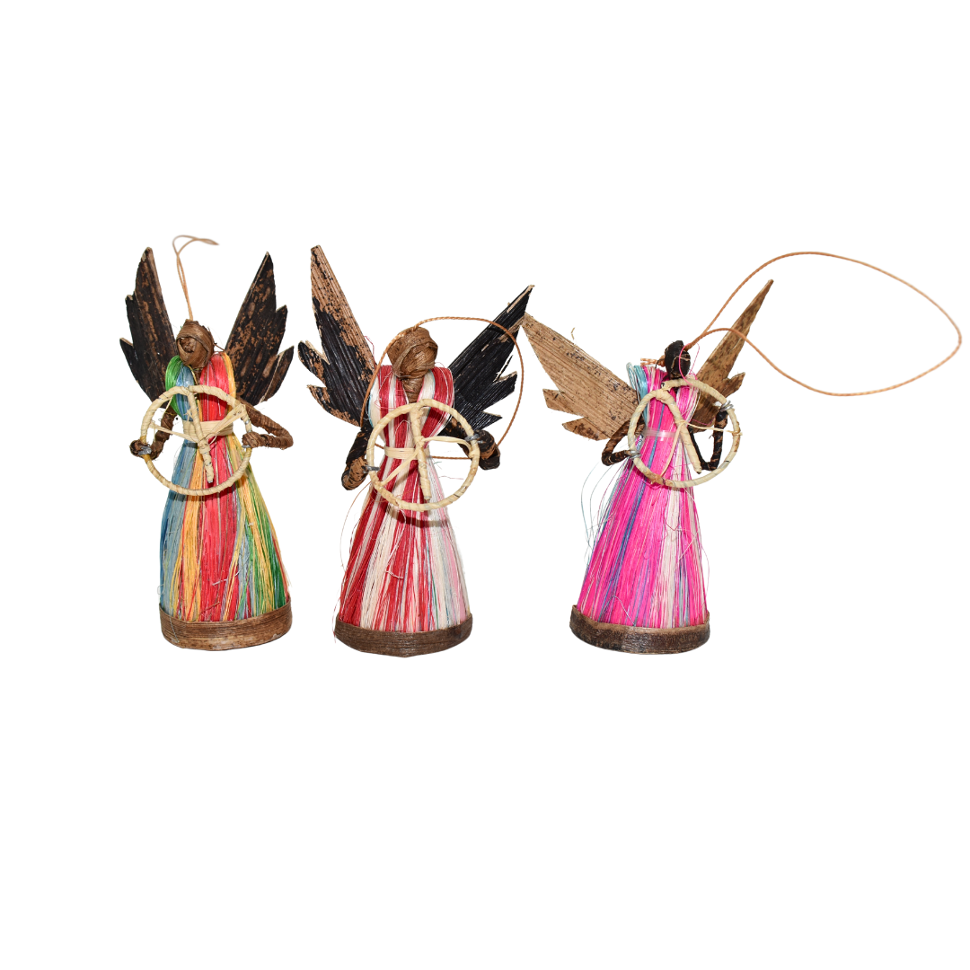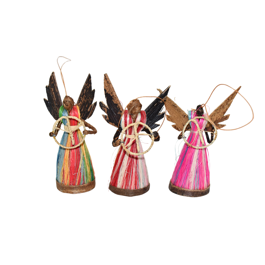 Angel Figurines Christmas Tree Ornaments | Colorful Banana Leaf | Set of 3 | Handmade Eco-Friendly