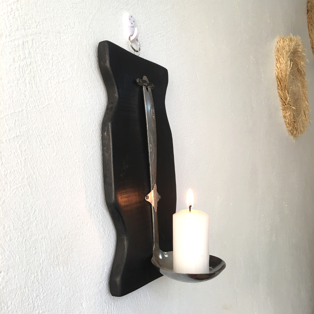 Introducing our artisan curated candle stand, a unique and beautiful addition to your home or special event. These irresistible African boho style candle holders are made from repurposed tree logs and steel spoon, adding a touch of natural elegance to any space.