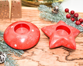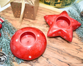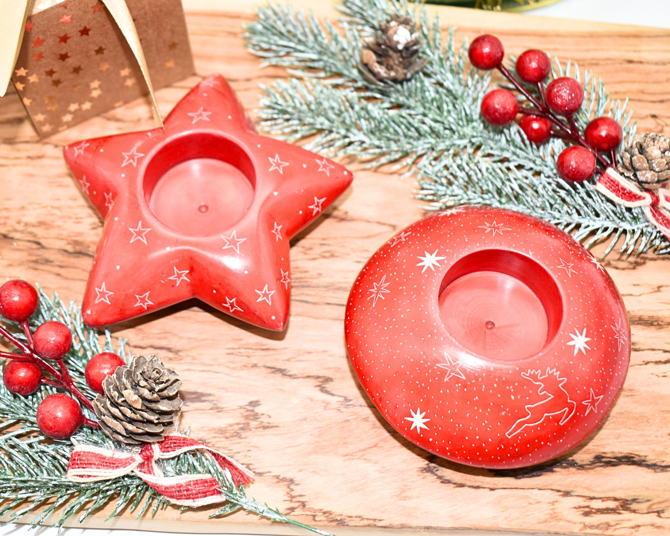 Christmas Soapstone Candle Holder | Red Circular Star Pattern | Kenyan Hand-Carved Décor