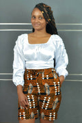 The Uhuru fabric used in this dress is a popular textile in Kenyan fashion. Uhuru is a Swahili word that translates to "freedom". The fabric celebrates Africa's struggle for independence.  this set provides both a fashionable outfit and holds deep cultural significance.