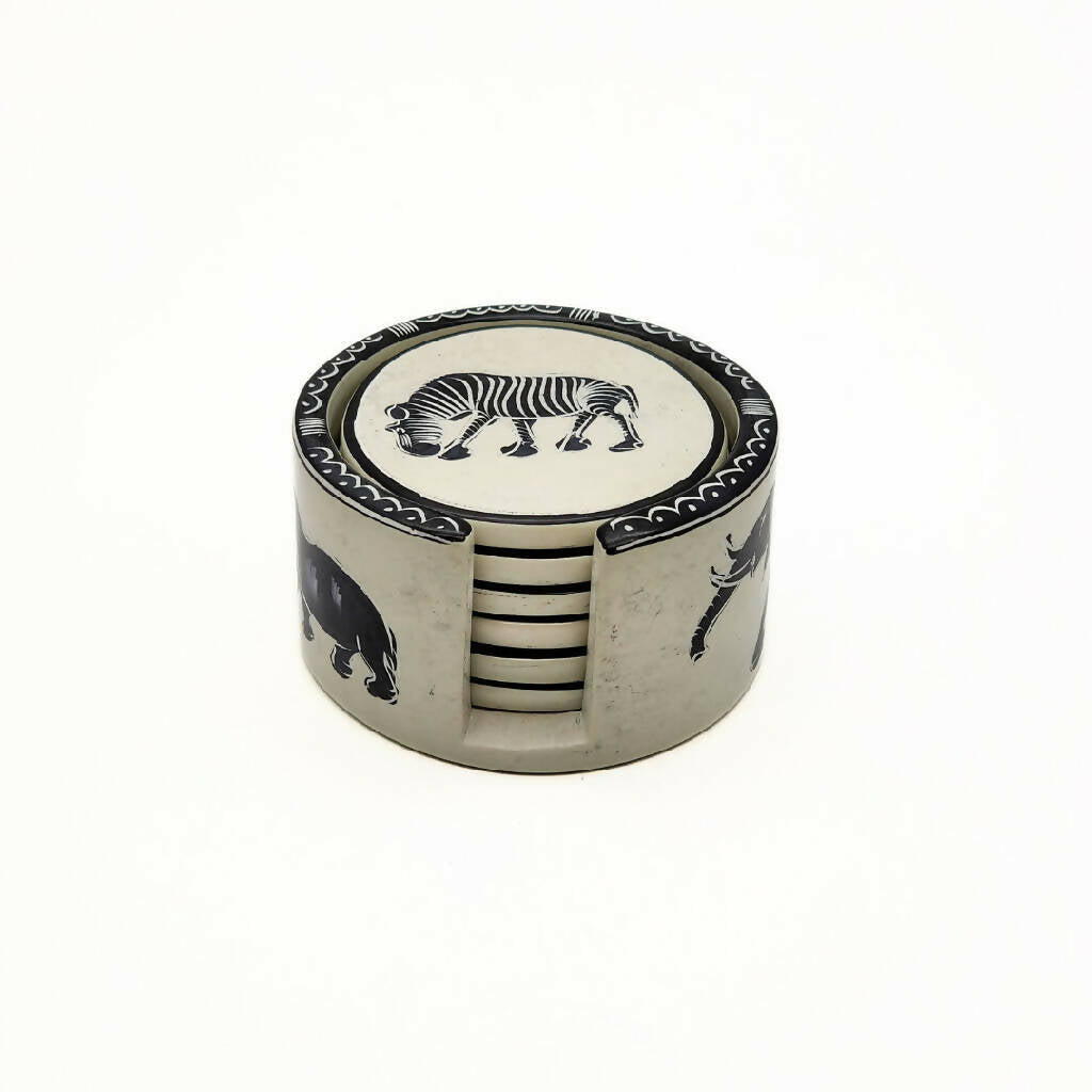 Crafted from high-quality soapstone, these coasters are both durable and functional. Each coaster has a diameter of 4 inches and weighs 0.950 grams, providing ample space to accommodate larger cups and glasses.