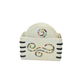 Display all six coasters on a tray when not in use to showcase the beadwork, use them during dinner parties to add cultural flair to your table setting, pair with other African-inspired décor for a cohesive look, or give as a complete set for a memorable gift. The natural stone and colorful beads complement both modern and traditional interiors.