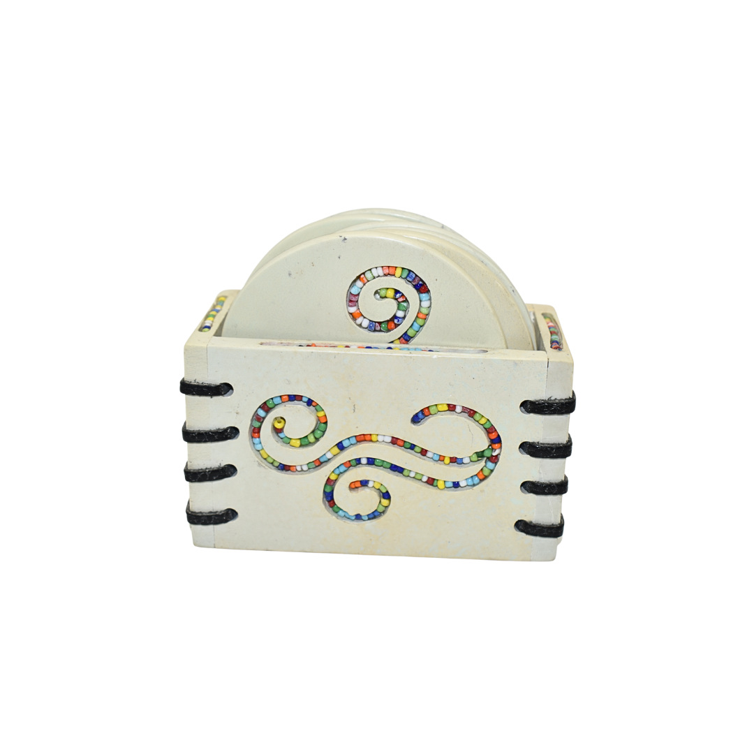 Soapstone Coasters with Maasai Beadwork | Set of 6 | Natural Stone | Kenyan Hand-Carved